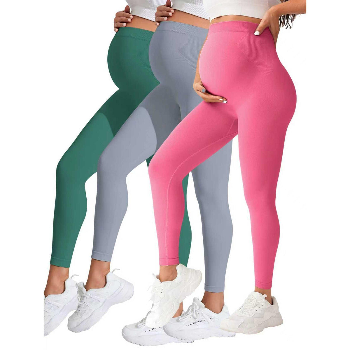 Perfect for yoga, light workouts, walking, or daily wear, the soft seamless fabric adapts to your growing bump and keeps you comfortable all day long 🧘♀️✨.