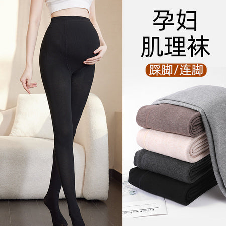 Maternity Leggings Cotton Ribbed Fleece Lined Belly Support