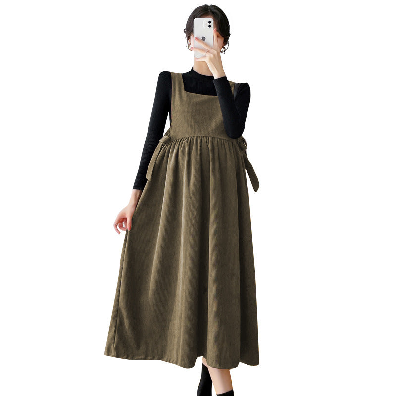 π Loose top & corduroy suspender skirt β comfort and style combined