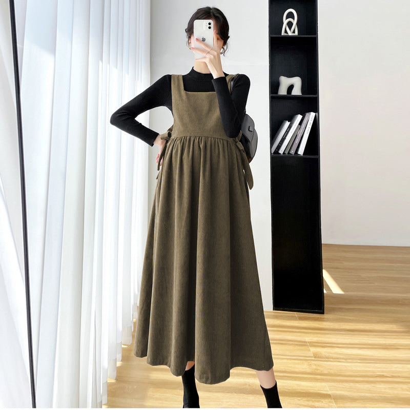 The corduroy material keeps you snug during cooler months, while the loose-fit top allows freedom of movement and accommodates your growing belly. Inspired by Korean maternity fashion, this suit offers a trendy, chic silhouette thatβs perfect for casual outings, office wear, or family gatherings. Its versatile style makes it easy to layer for added warmth and comfort.