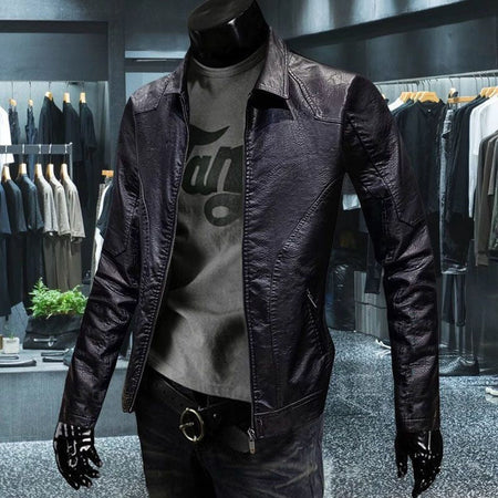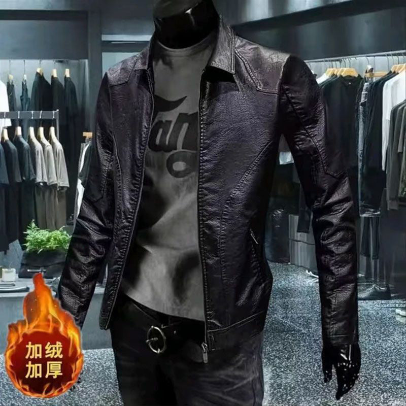 Ideal for men seeking a fashionable, slim-fit leather jacket suitable for cross-border supply and international sales.