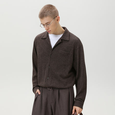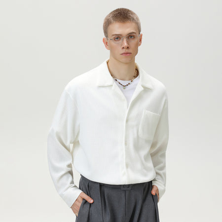 Men’s Autumn Winter Cuban Collar Long-Sleeve Shirt