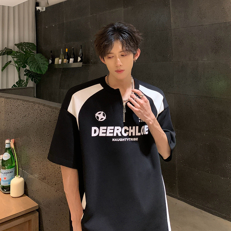 Ride into summer with style and confidence wearing the Black and White Patchwork Letter Men’s T-Shirt—a heavyweight, half-zip biker-inspired short-sleeve shirt designed for Nepal’s trendsetters 🇳🇵. Combining bold American streetwear vibes 🇺🇸 with practical comfort, this T-shirt is perfect for casual outings, biking adventures 🚴♂️, or urban hangouts in Kathmandu and beyond.