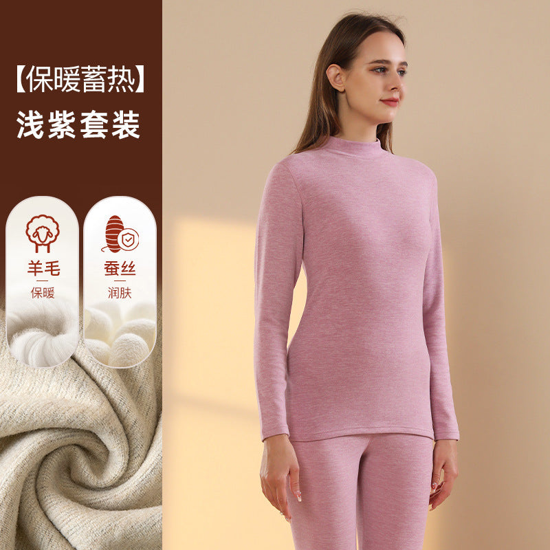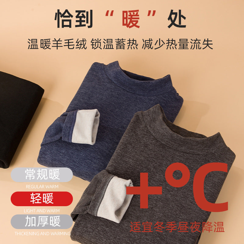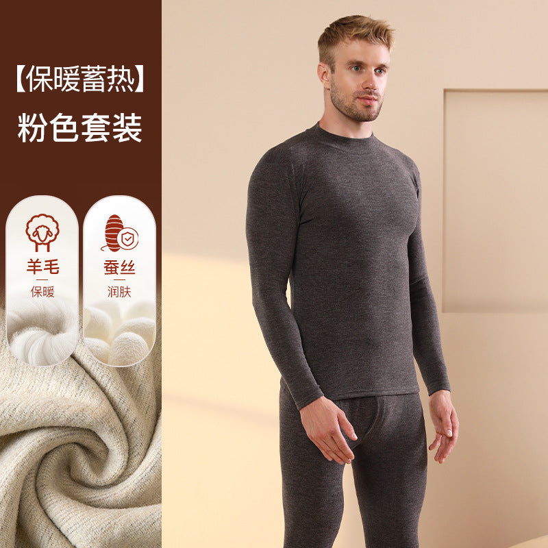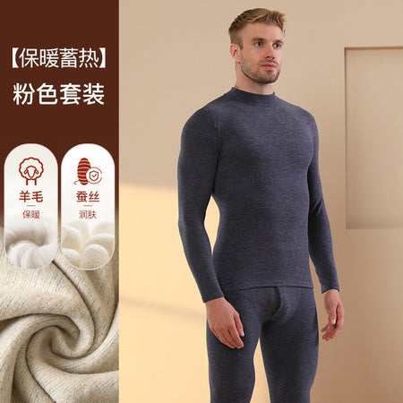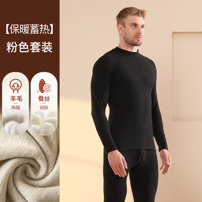 Men’s Cashmere Silk Velvet Thermal Suit – Half Turtleneck Winter