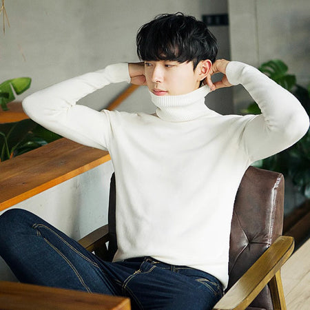 Men’s Classic Fleece-Lined Turtleneck Sweater Warm Knitwear