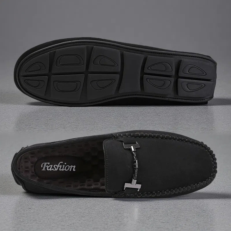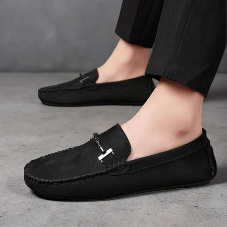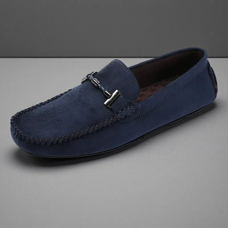 Men’s Comfortable Flat Shoes – Fleece Leather Slip-On Loafers