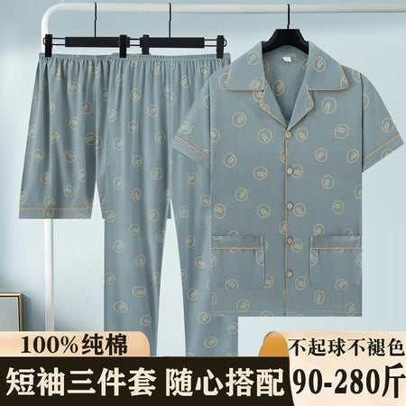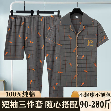 Men’s Cotton 3-Piece Pajama Set – Plus Size Summer Wear