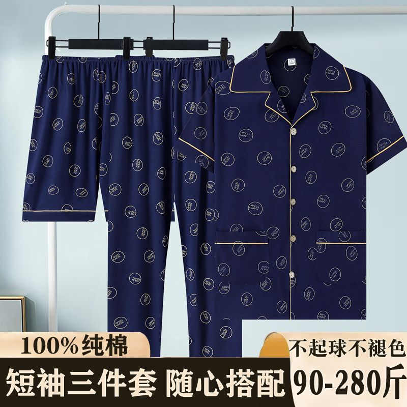 🌼 Stay cool and comfy with this 3-piece men’s cotton pajama set, designed especially for fat guys and plus-size comfort lovers! Ideal for spring and summer, it includes a breathable short-sleeved T-shirt, comfy shorts, and matching pants – giving you full flexibility for day or night. 🛌🌙