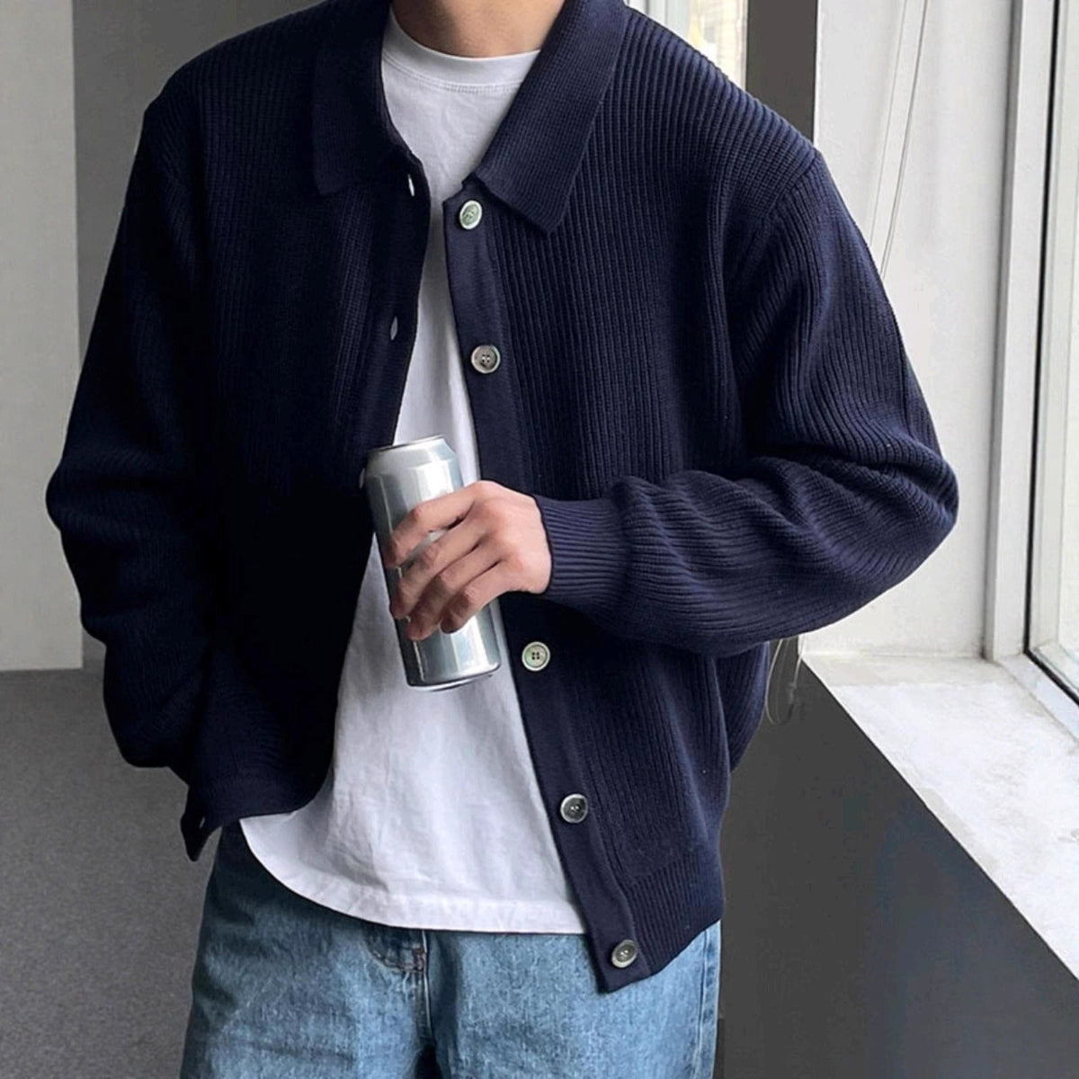 Elevate your casual wardrobe with this Korean-style dark green lapel cardigan sweater jacket—a comfortable, trendy, and versatile essential for modern men! 🌟