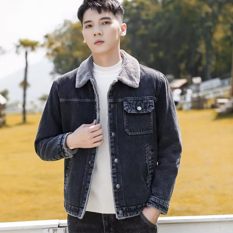 Stay warm and stylish with the Men’s Autumn & Winter Denim Coat, designed for men who want fashionable, cozy, and versatile outerwear. Perfect for 2024, this jacket features a fleece-lined interior and a luxurious lamb fur collar, combining thickened warmth with a trendy street-ready look.