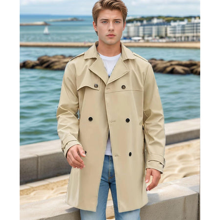 Step into the season in style with this men’s double-breasted slim-fit jacket — your go-to coat for spring and autumn sophistication.