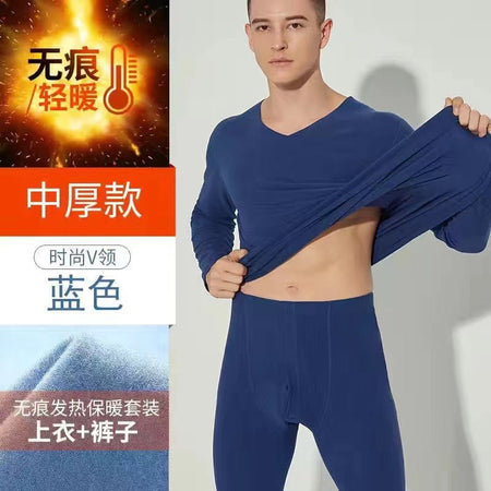 Men’s Double-Sided V-Neck Thermal Set – Thick Fleece-Lined Autumn