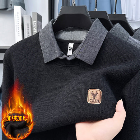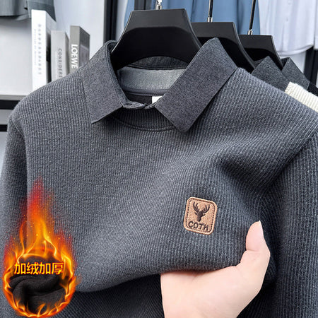 Upgrade your autumn and winter wardrobe with this faux two-piece plus velvet knitted sweater for men. Designed for comfort, style, and warmth, this new foreign trade shirt features a lapel design and thickened construction, making it perfect as a casual bottoming layer or standalone top.
