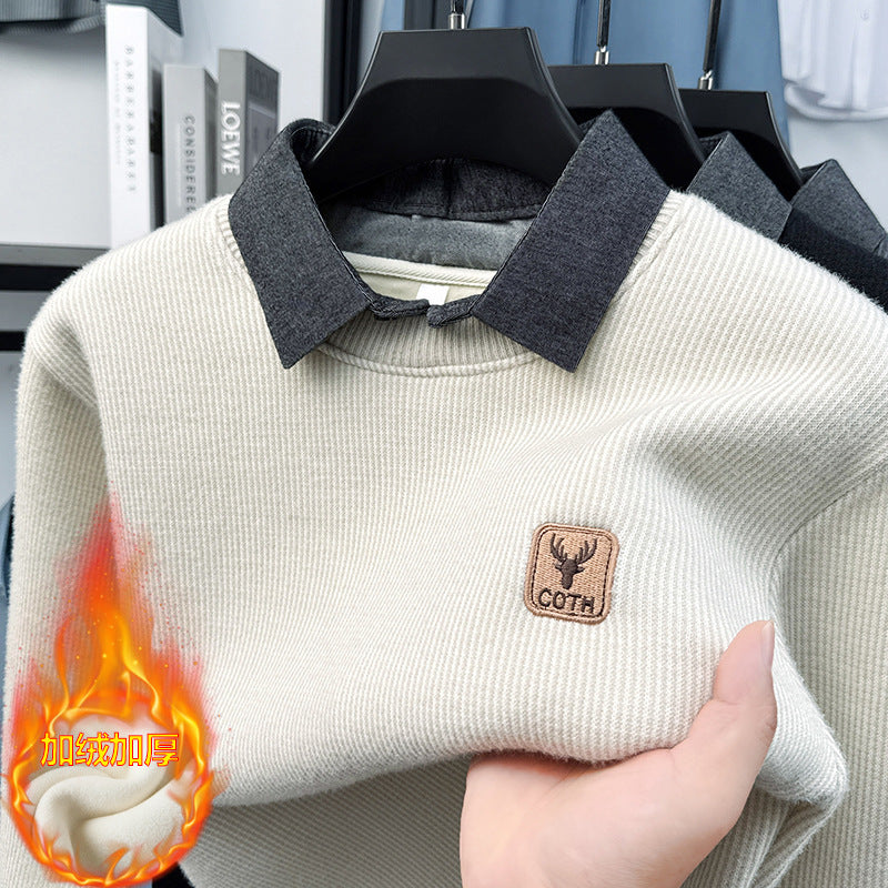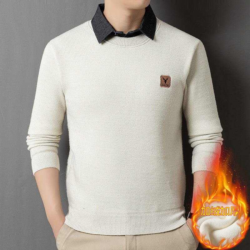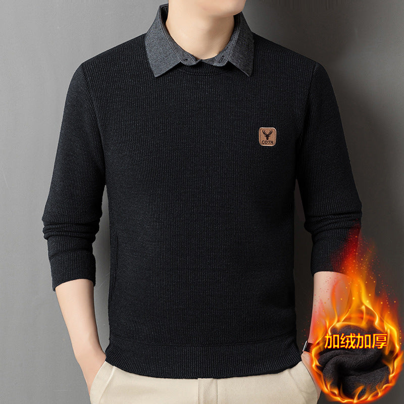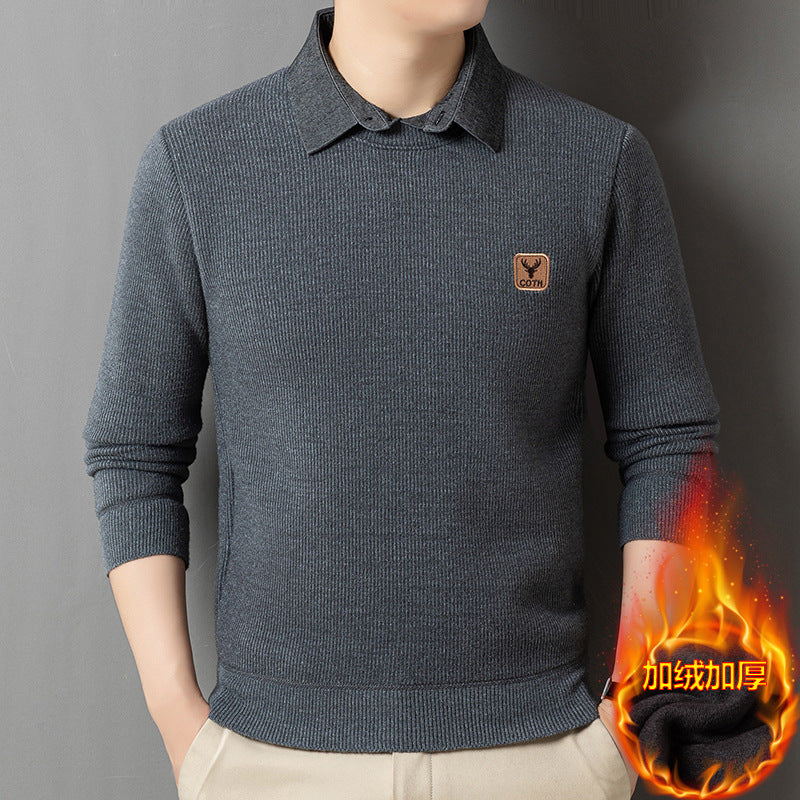 Men’s Faux Two-Piece Velvet Knit Sweater Autumn Winter
