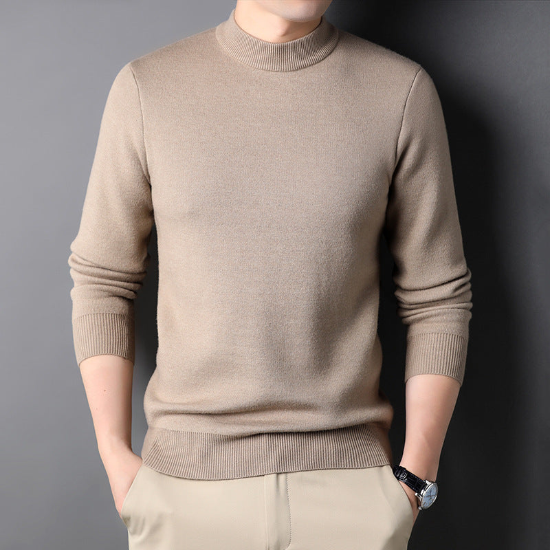 Men’s Fleece-Lined Half-High Neck Sweater Winter Warm Top
