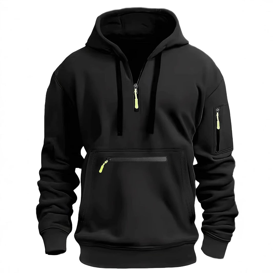 Men’s Fleece-Lined Hoodie | Multi-Zipper Casual Sports Pullover