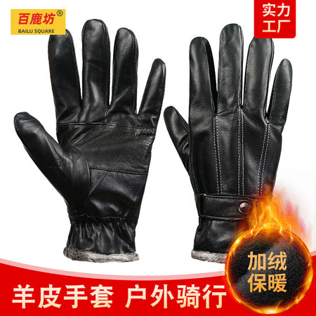 Men’s Genuine Leather Gloves Fleece-Lined Thick Warm Winter