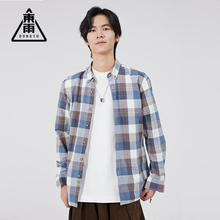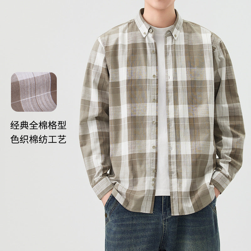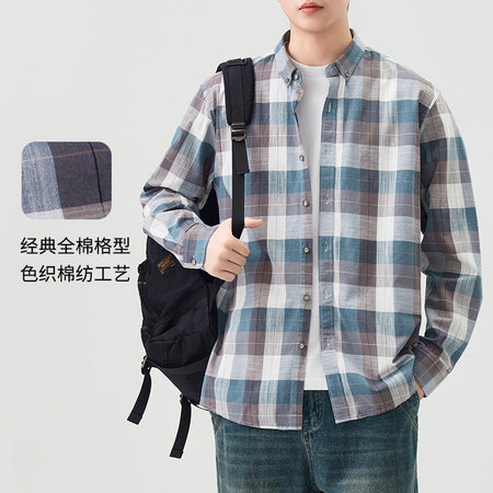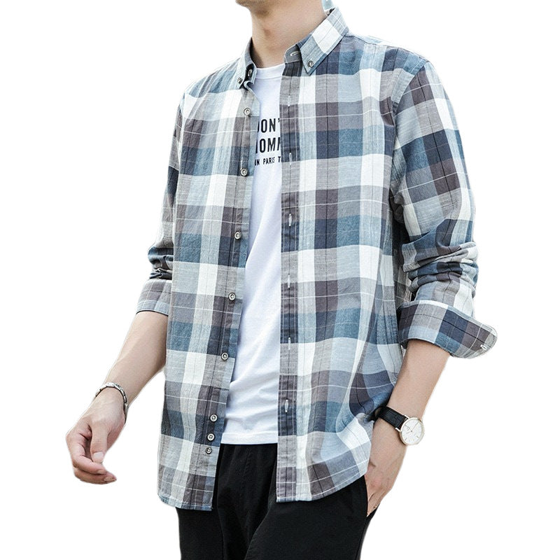 Men’s Gradient Plaid Shirt – Long Sleeve Casual Spring Wear