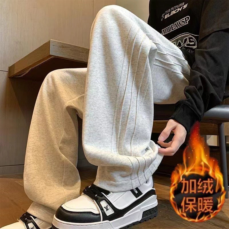 Stay warm and stylish this season with these heavy fleece-lined men’s sweatpants, perfect for autumn and winter wear. Designed with a loose, wide-leg fit, these all-match casual pants combine comfort, warmth, and trendy style, making them ideal for sports, lounging, or streetwear fashion. 🏃♂️❄️