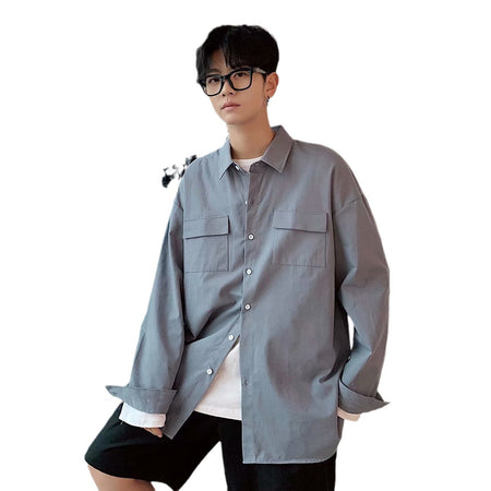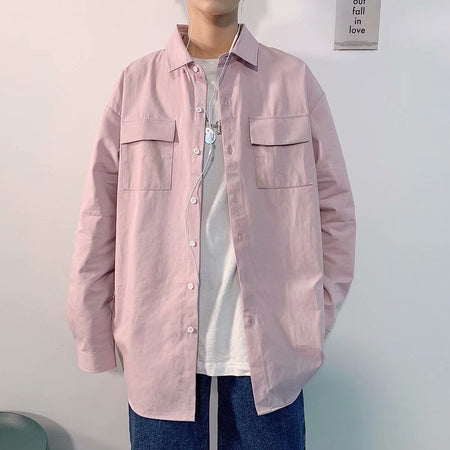 Men’s Hong Kong Style Casual Long-Sleeve Overshirt