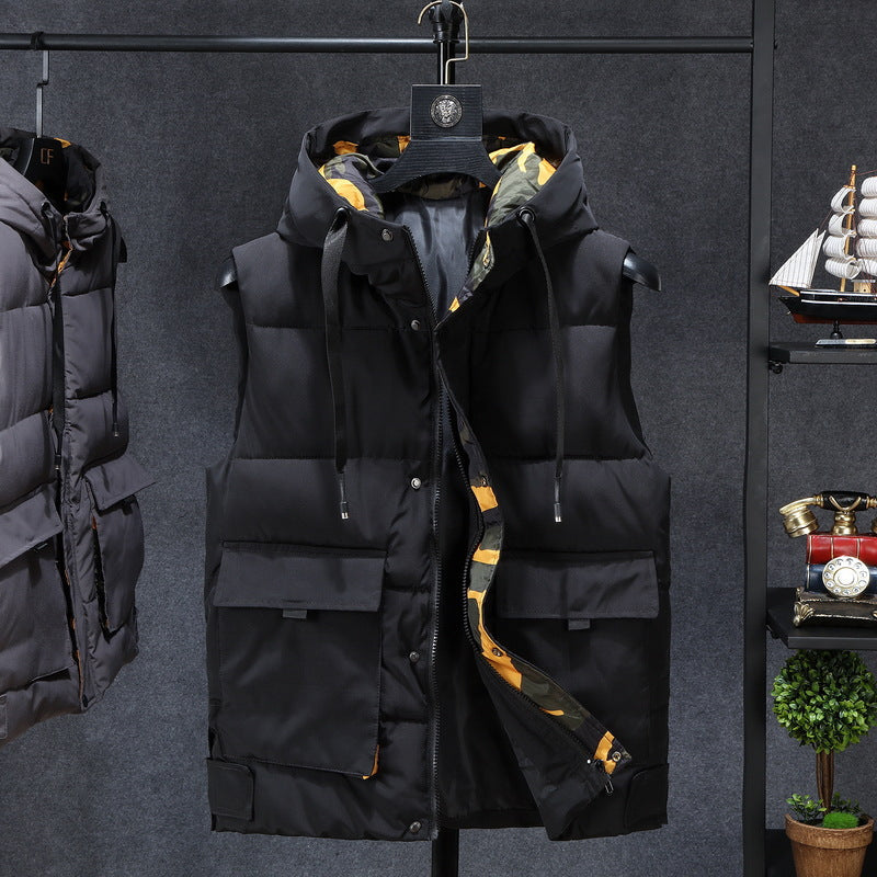 Men’s Hooded Down Cotton Vest Korean Style Trendy