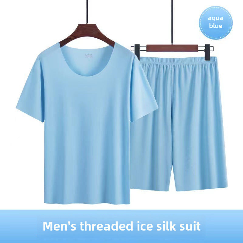 Men’s Ice Silk Modal Pajama Set – Summer Seamless Wear