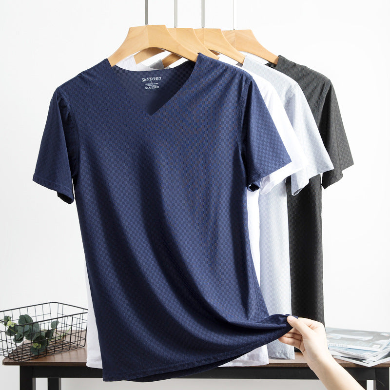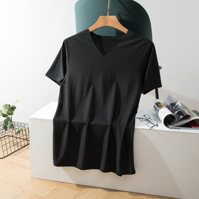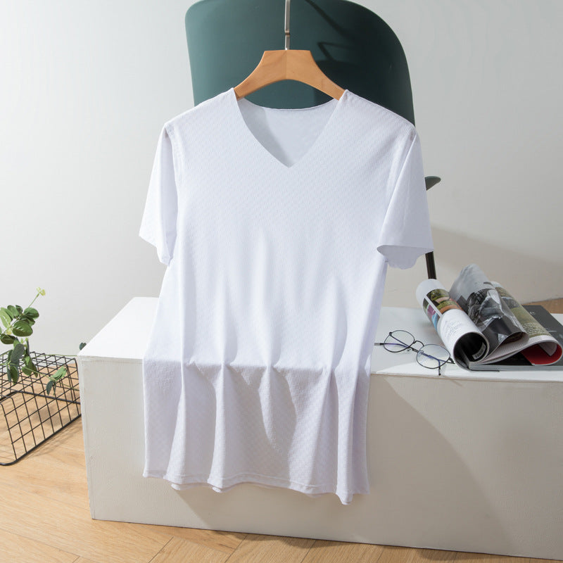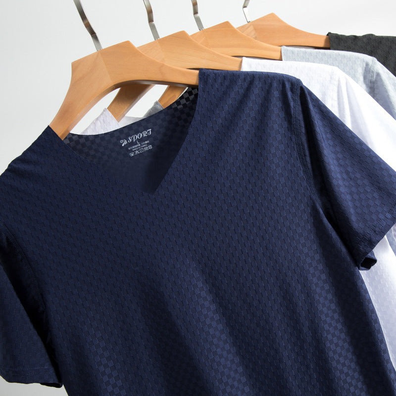 Men’s Ice Silk Quick-Dry V-Neck Sports T-Shirt Summer