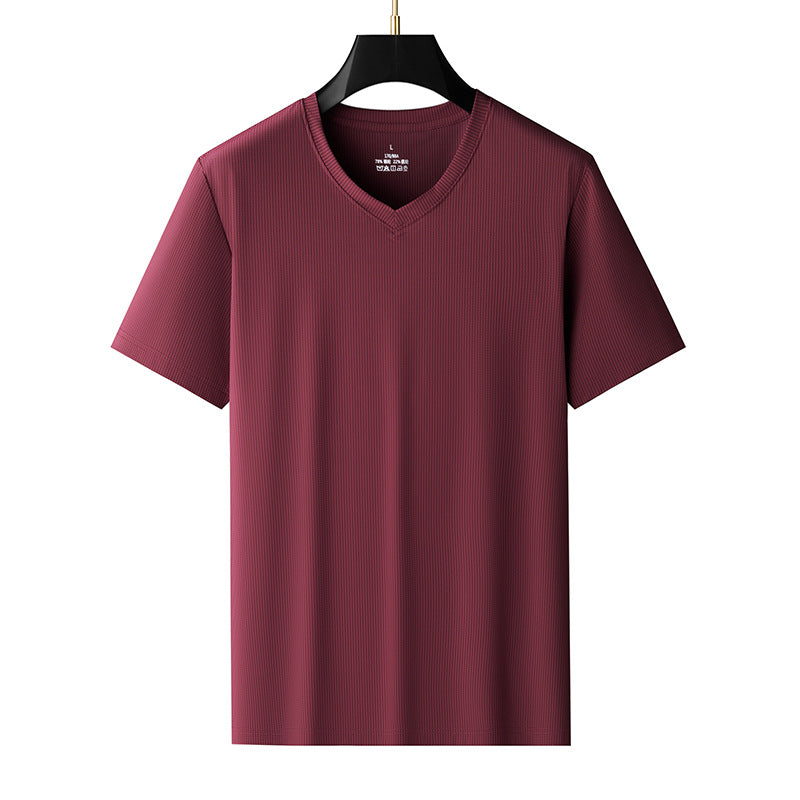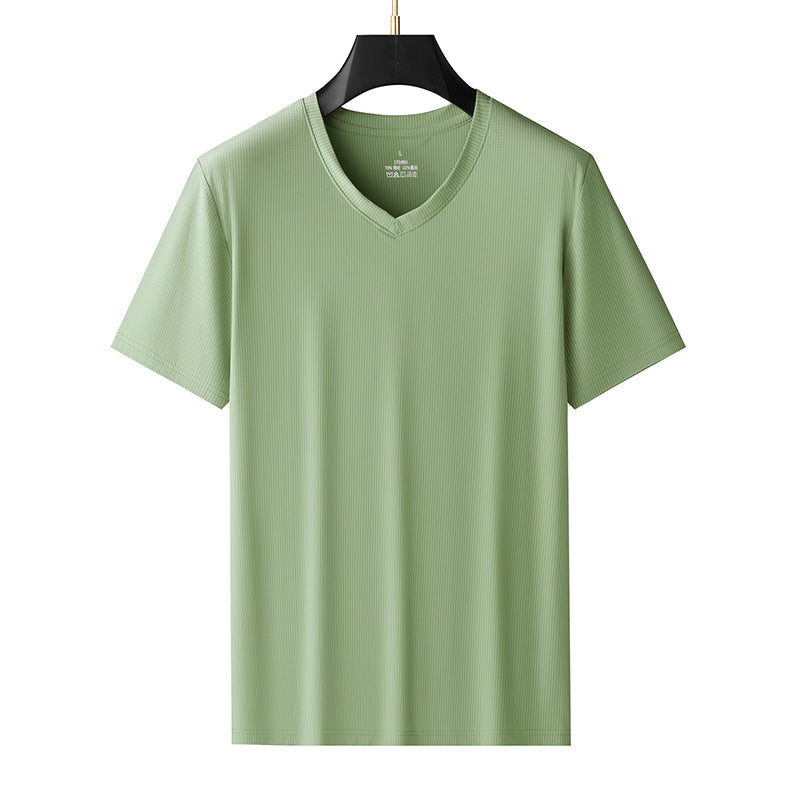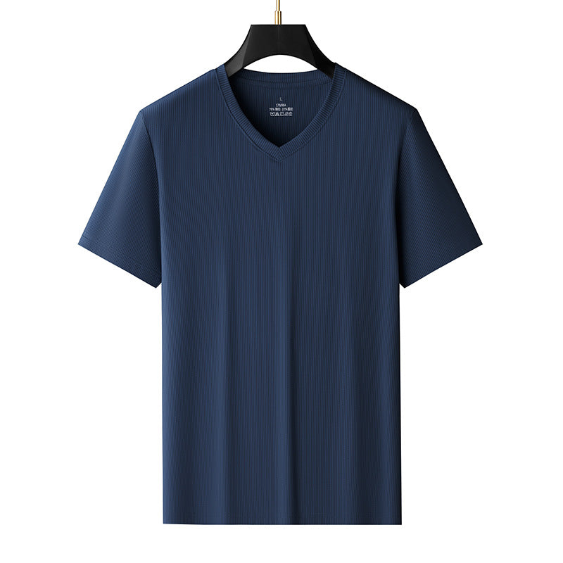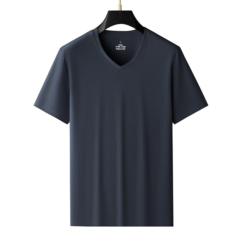 Men’s Ice Silk V-Neck T-Shirt – Plus Size Loose Summer Top