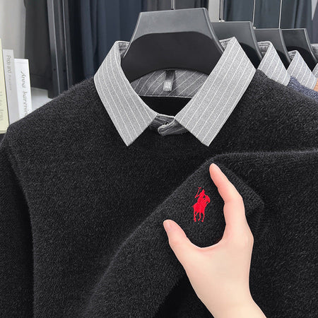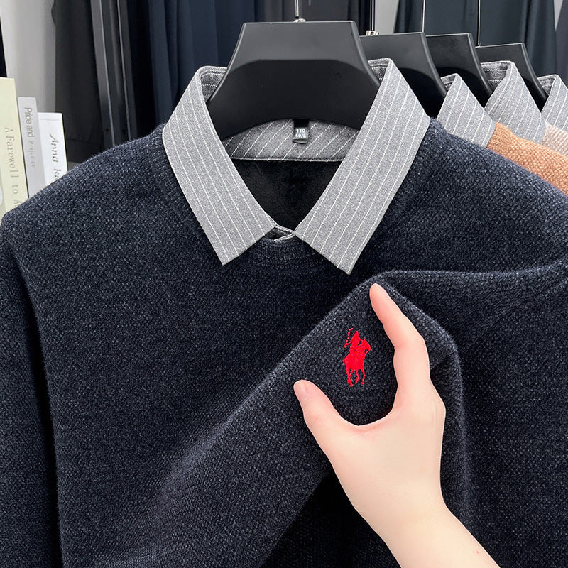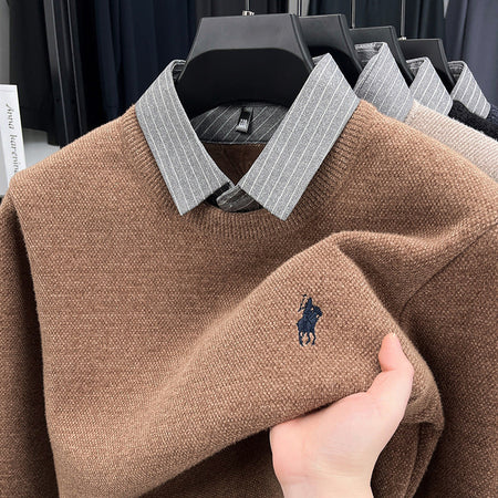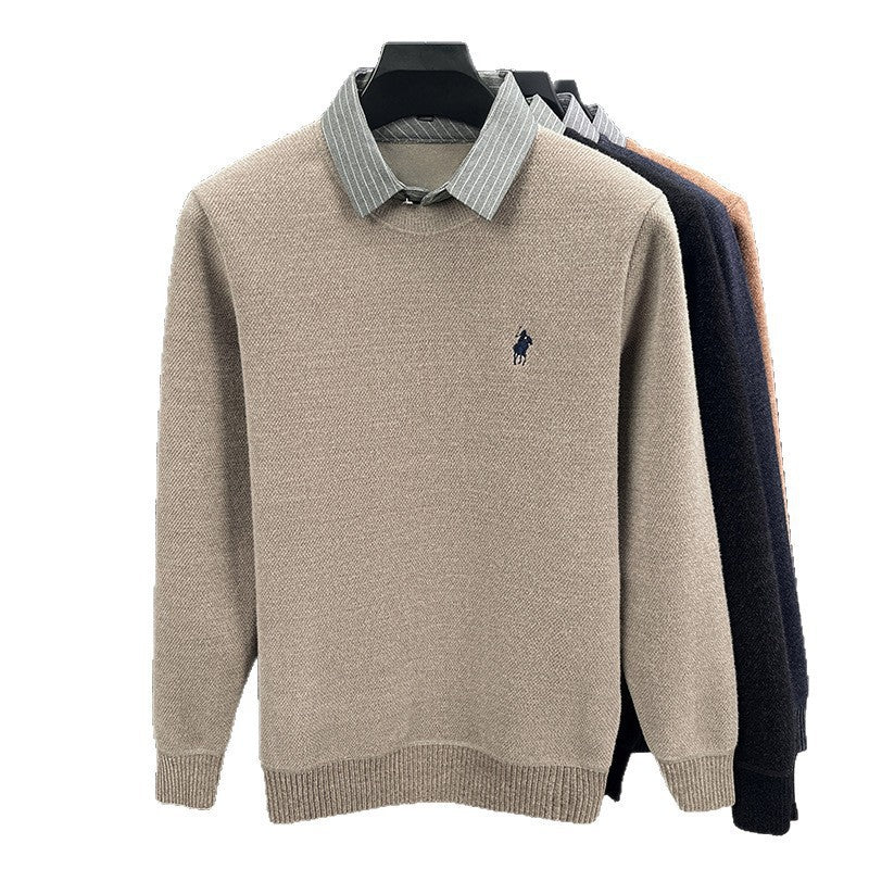 Men’s Knitted Bottoming Shirt Sweater Collar Fake Two-Piece Top