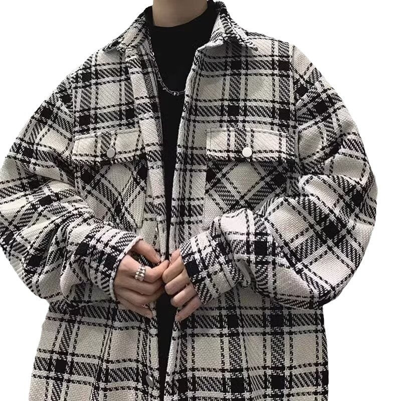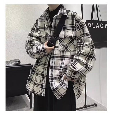 Elevate your seasonal wardrobe with this Korean-Hong Kong-Japanese style loose plaid shirt jacket—a comfortable, stylish, and versatile essential for modern men! 🌟