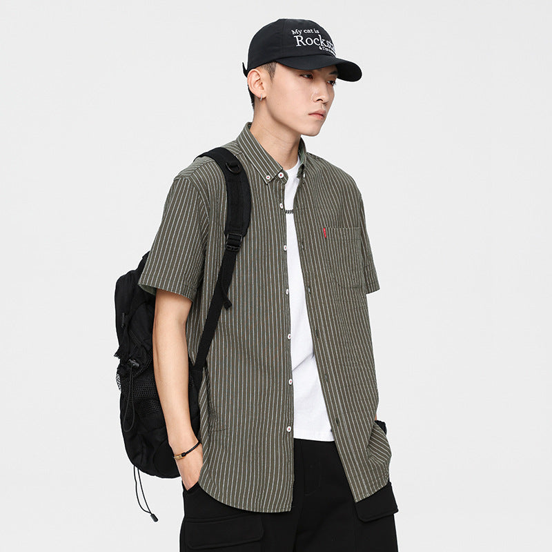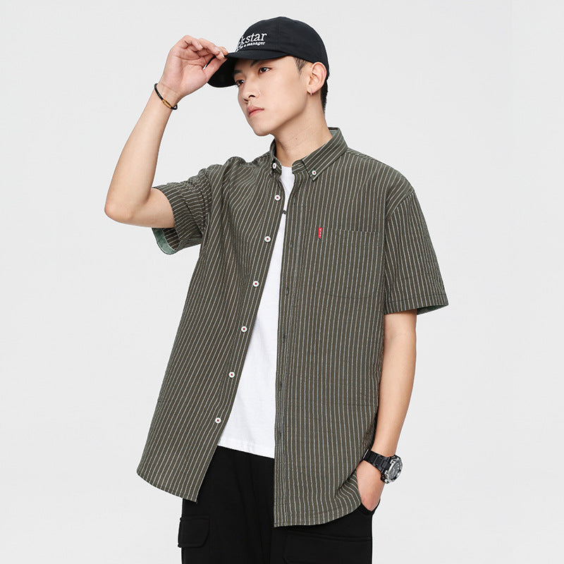 Men’s Korean Striped Short Sleeve Shirt – Summer Casual Wear