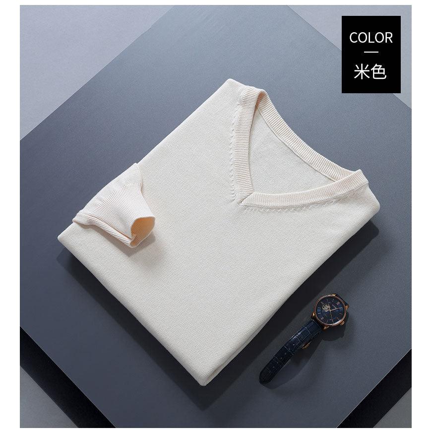 Men’s Large V-Neck Wool Sweater – Korean Loose Fit