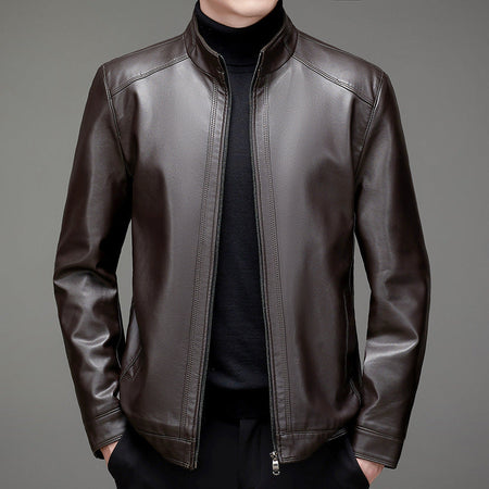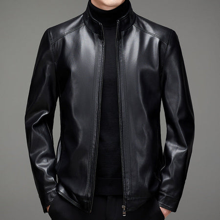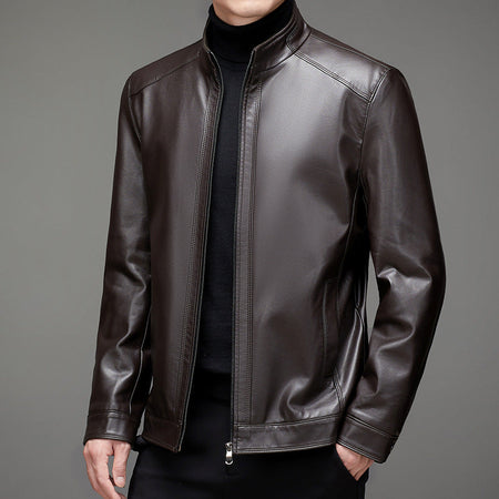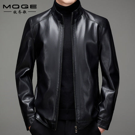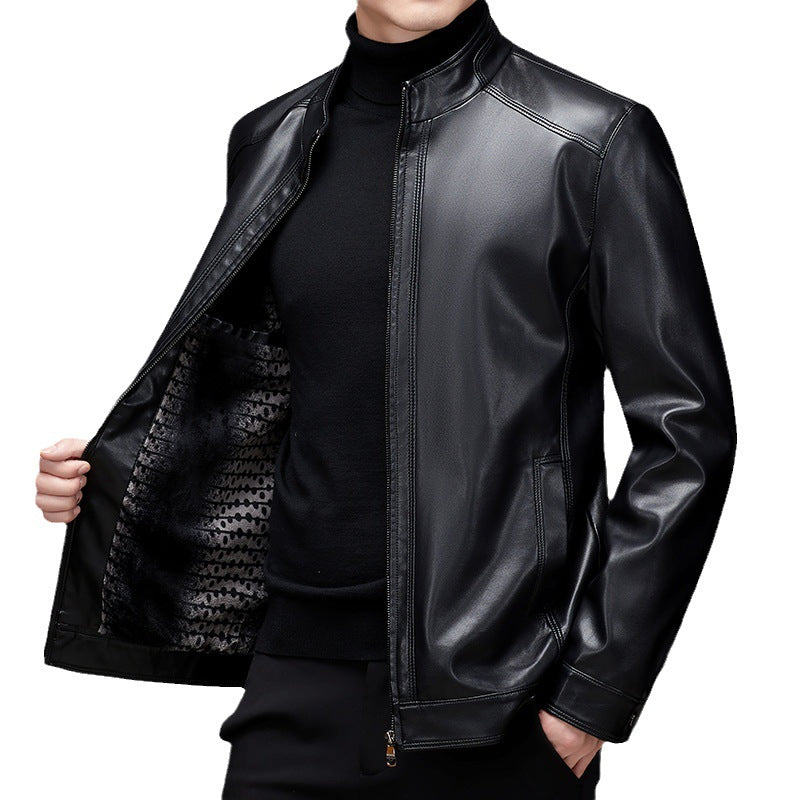Men’s Leather Jacket – Autumn Winter Stand Collar Plus Size