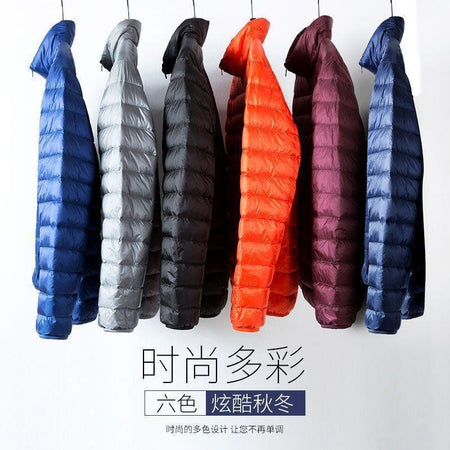 Men’s Lightweight Hooded Down Cotton Jacket – Short Stand-Collar,