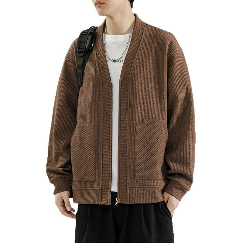 Elevate your autumn and winter wardrobe with this men’s loose V-neck knitted sweater jacket—a stylish, versatile, and comfortable essential for modern men! 🌟