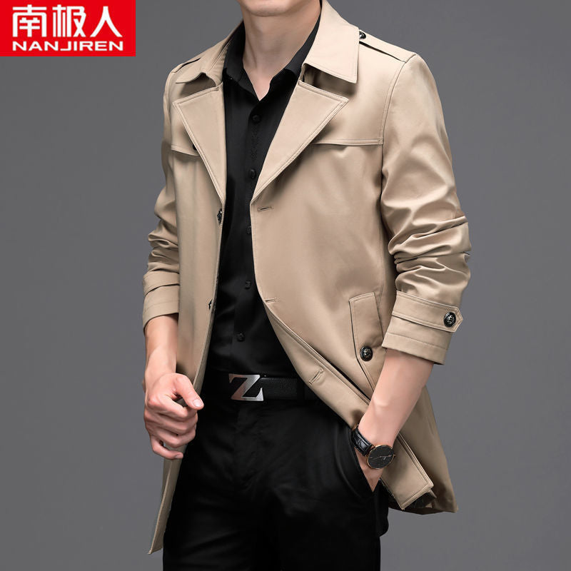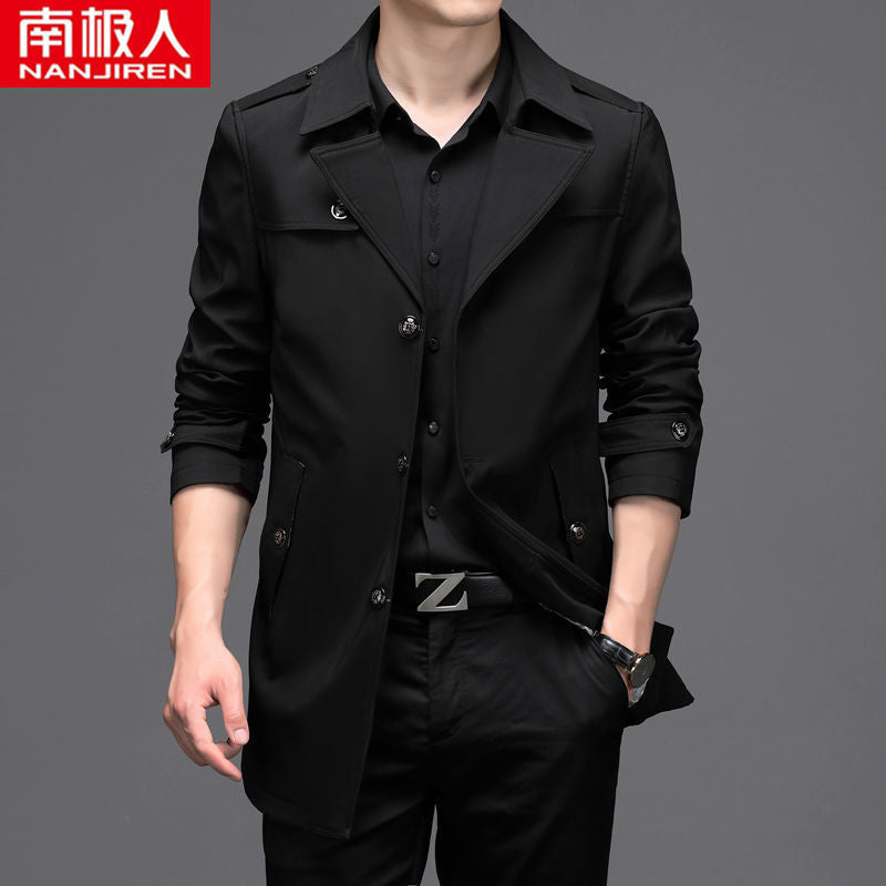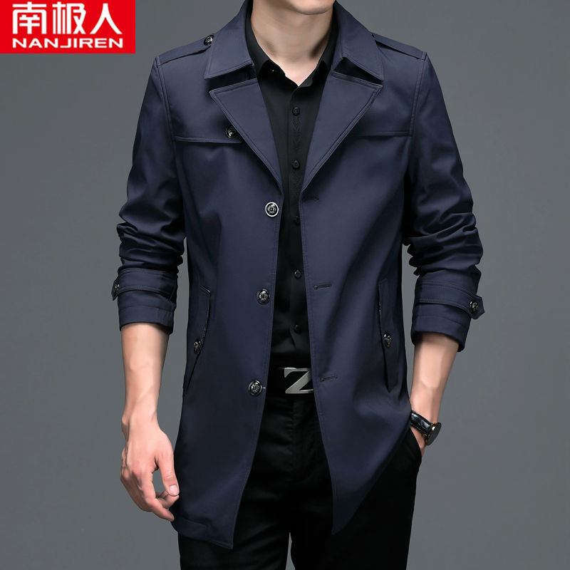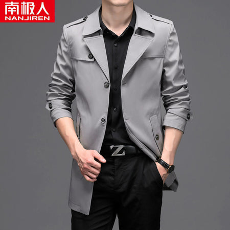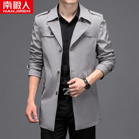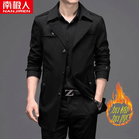 Men’s Medium Long Windbreaker Coat Autumn Winter Jacket