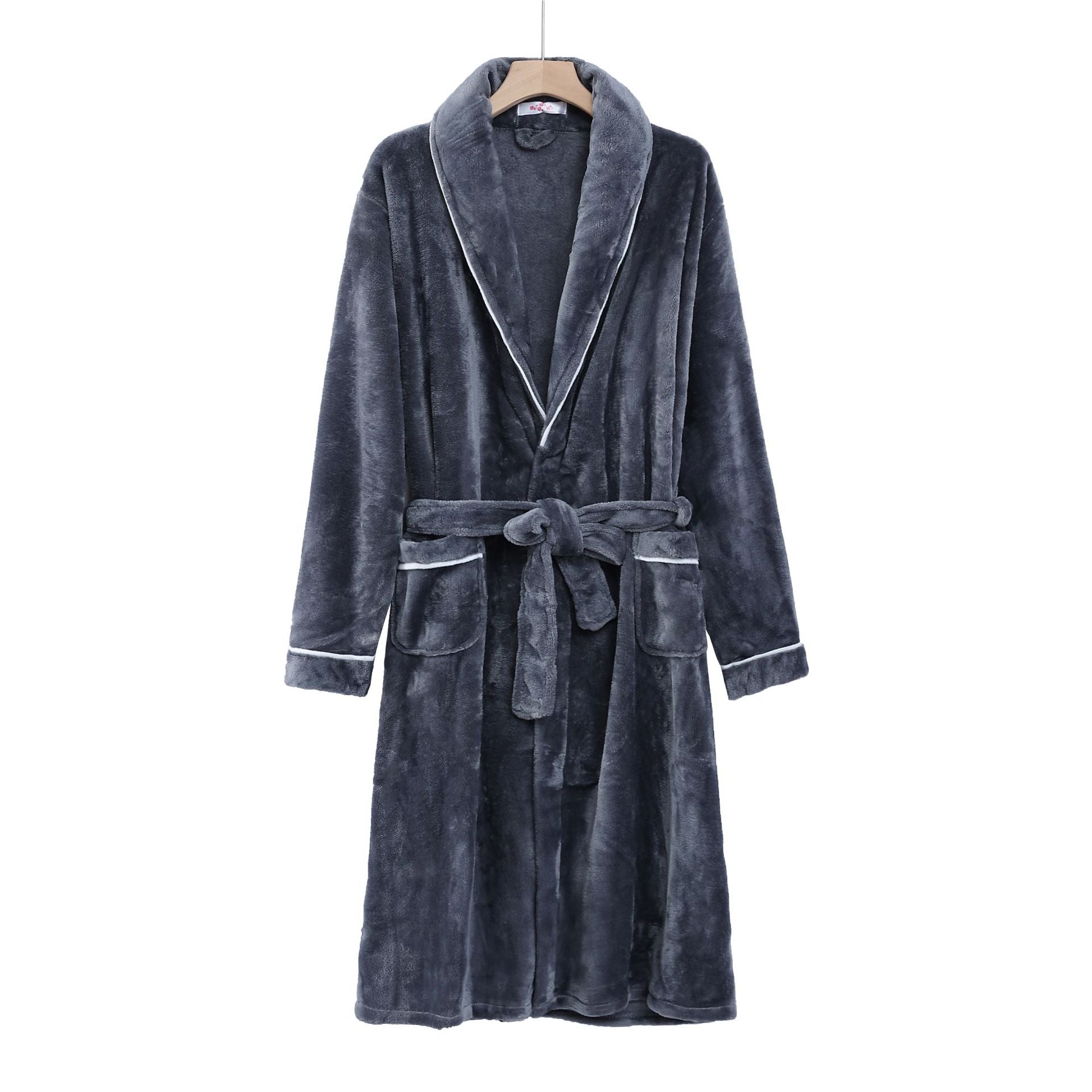 Men’s Mid-Length Flannel Bathrobe – Warm Autumn Winter Robe