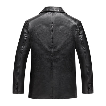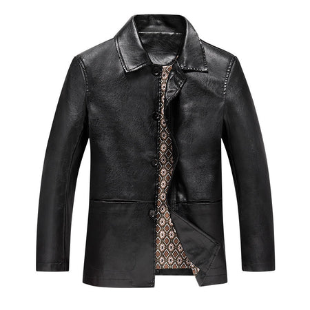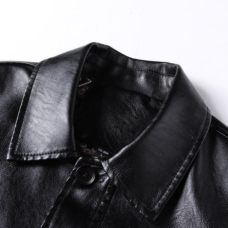 Men’s Middle-Aged Large-Size Lapel Leather Jacket Spring-Autumn