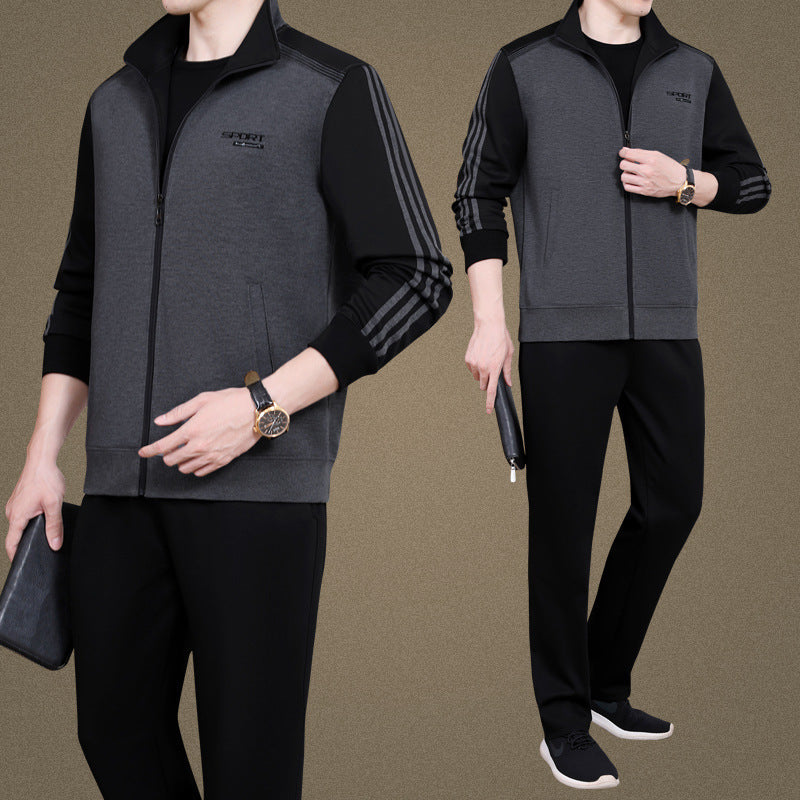 Men’s Middle-Aged Thickened Sports Suit Three-Piece Set