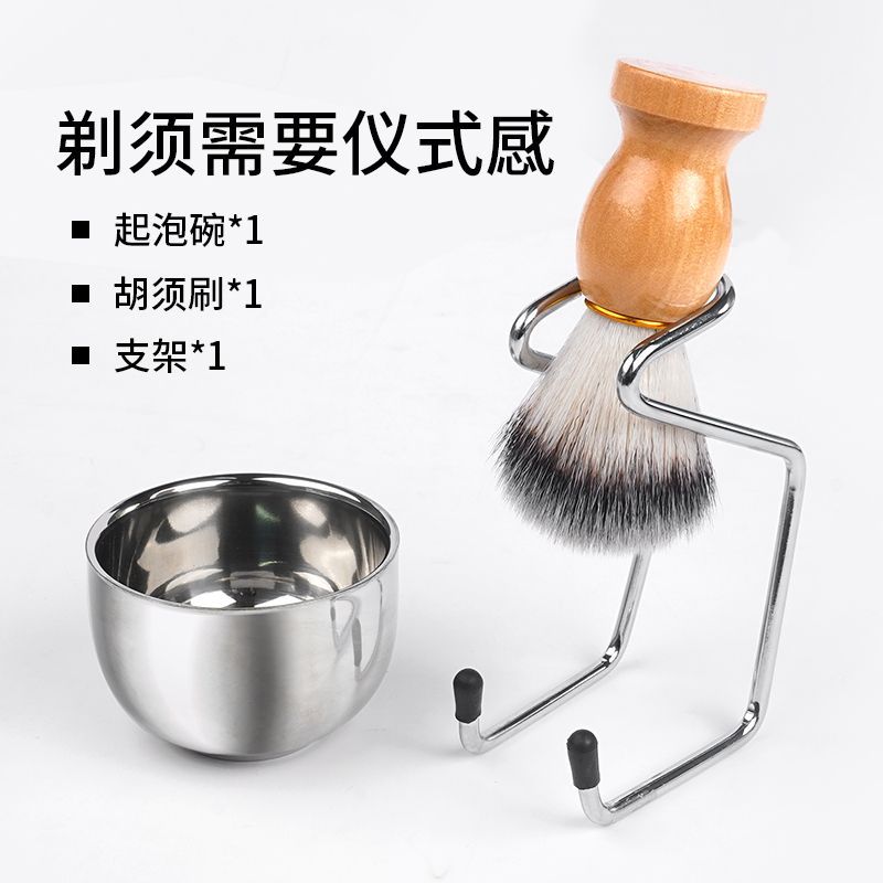 Experience a professional shave at home with this Old-Fashioned Shaving Brush Set. This complete kit includes a beard brush, brush holder, shaving soap/foam bowl, and all the essentials needed for rich, creamy lather and precise beard grooming.