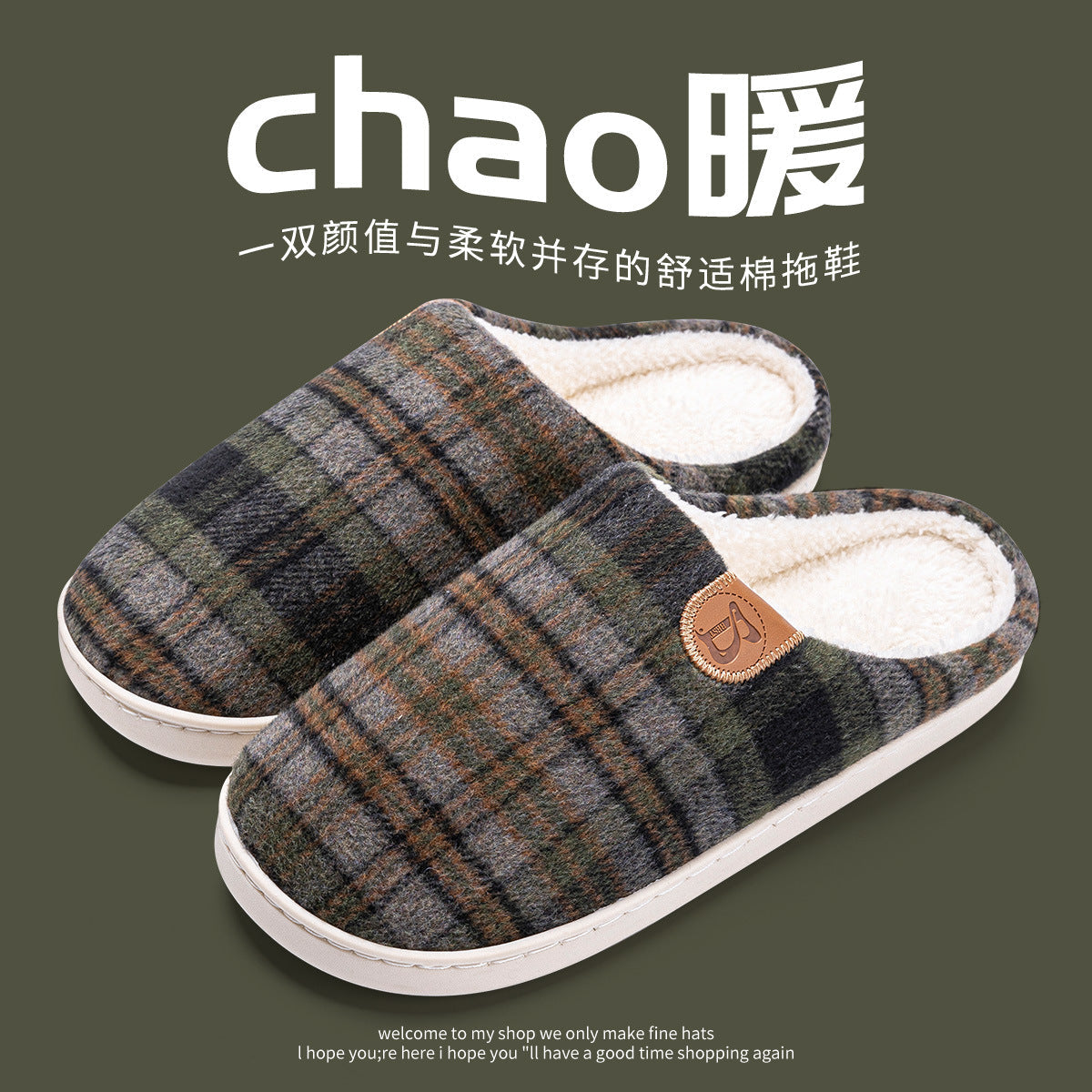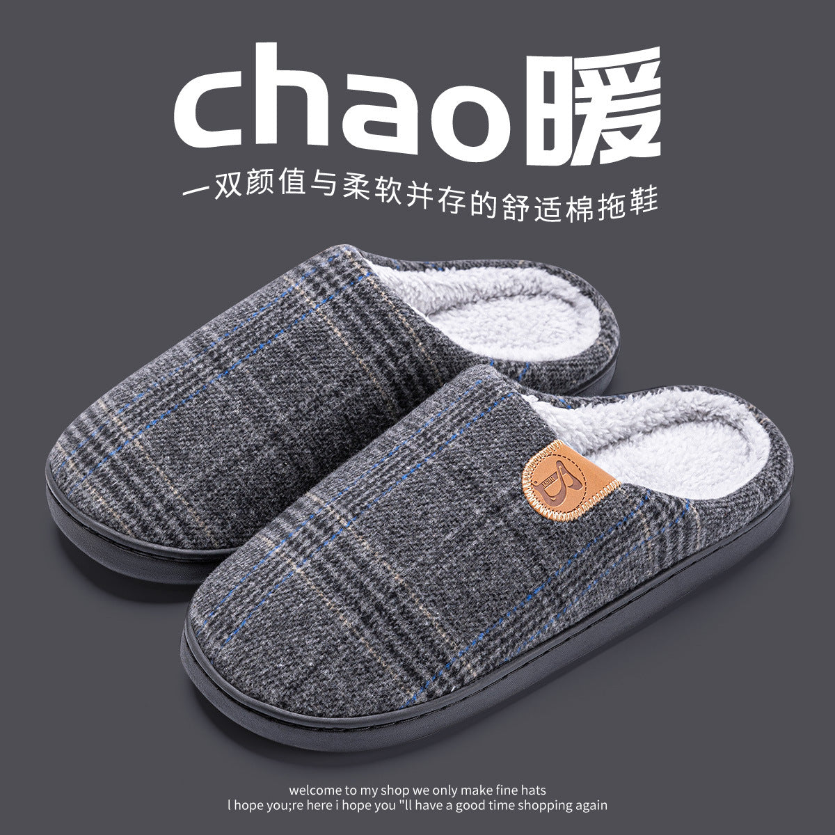Men’s Plus Size Cotton Slippers 2023 Warm Non-Slip Indoor Home