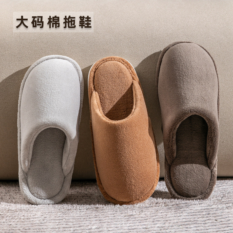 Men’s Plus Size Cotton Slippers – Thick Fleece-Lined Indoor Home