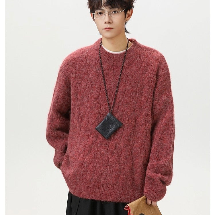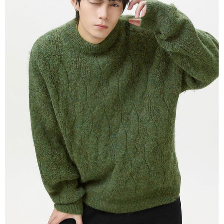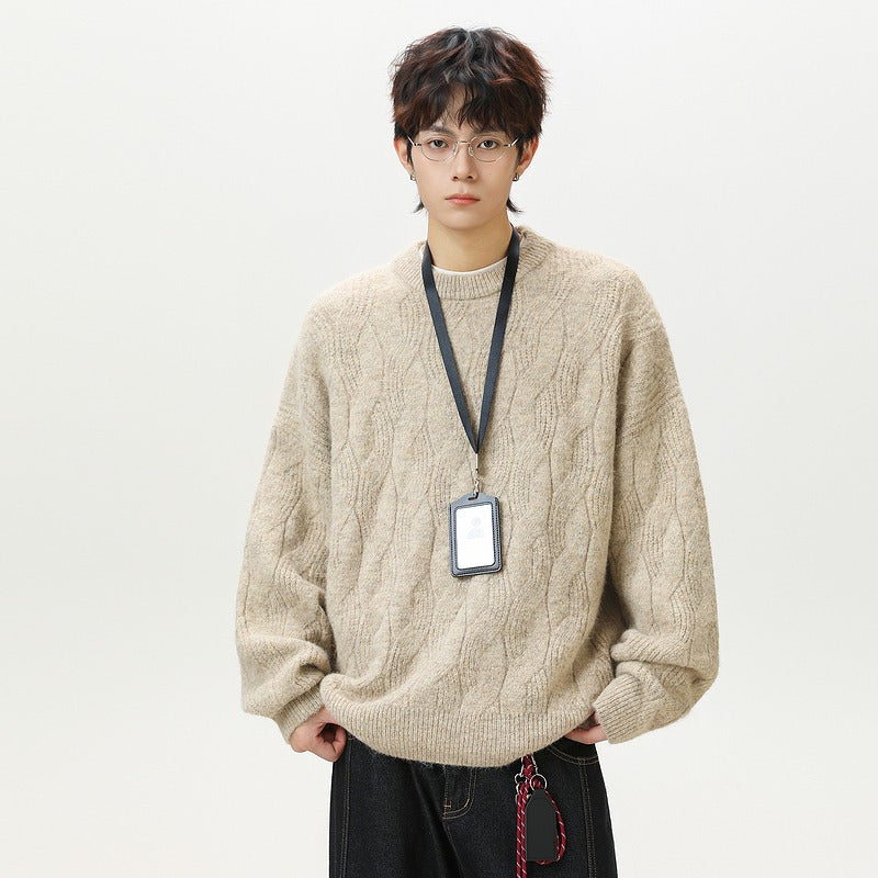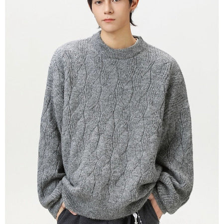 Men’s Retro Cable Knit Round Neck Pullover