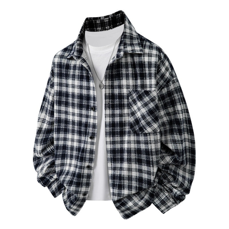 Step into autumn with this men’s retro plaid casual overshirt, perfect for young fashion-forward men. Designed with a loose, comfortable fit and long sleeves, this versatile overshirt can be worn as a layered top or statement piece, making it ideal for casual outings, school, or weekend activities.