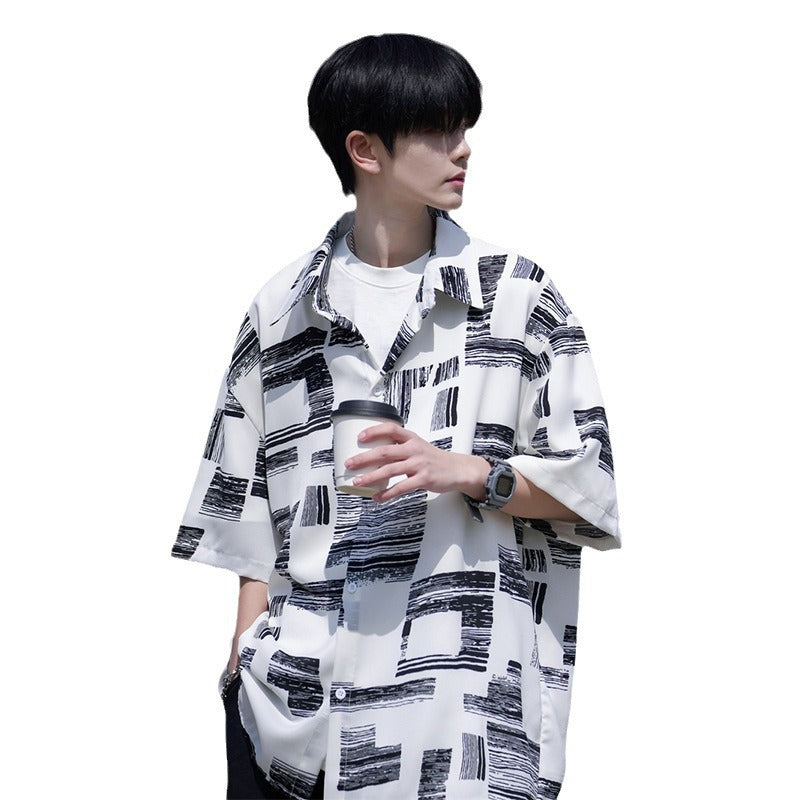 🌇 Add flair and personality to your wardrobe with the Men’s Summer Striped Short-Sleeved Shirt, inspired by the ever-popular Hong Kong streetwear style. 🇳🇵 This youth-focused lapel shirt brings together bold fashion and everyday comfort — perfect for casual wear in Nepal’s vibrant city life or relaxed weekends in nature. 👕🌄