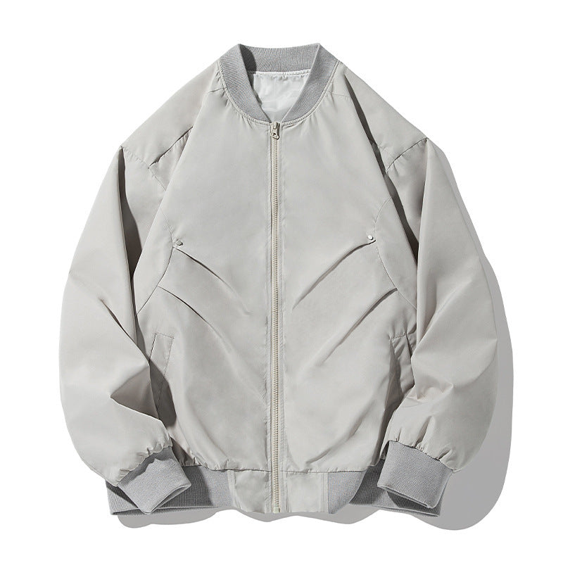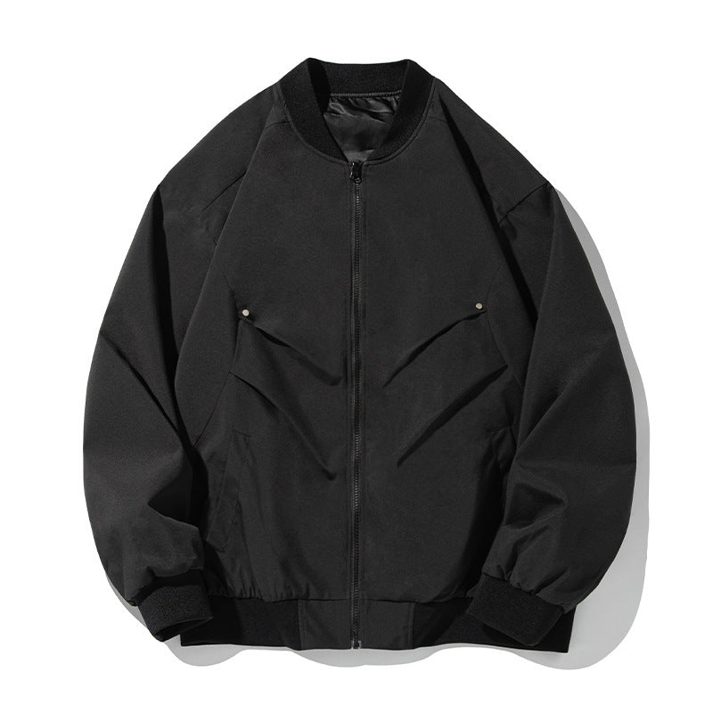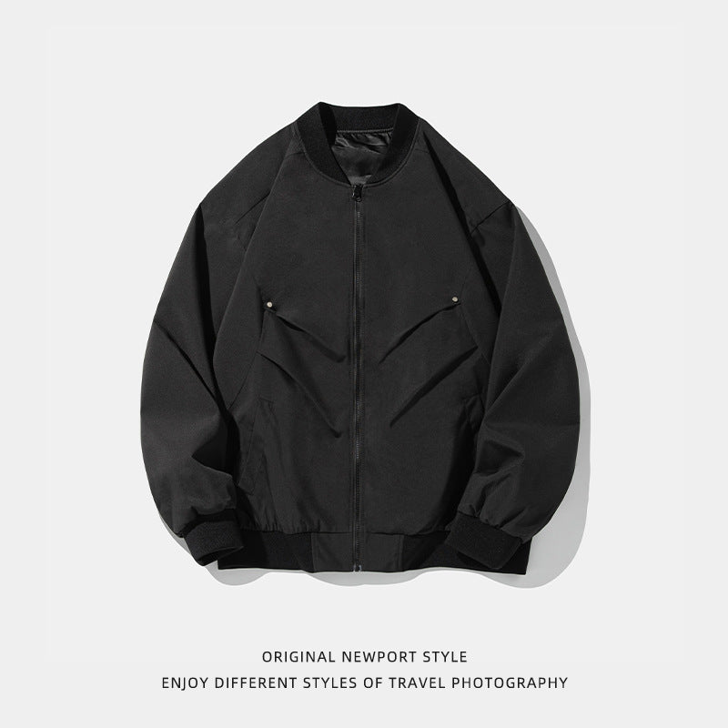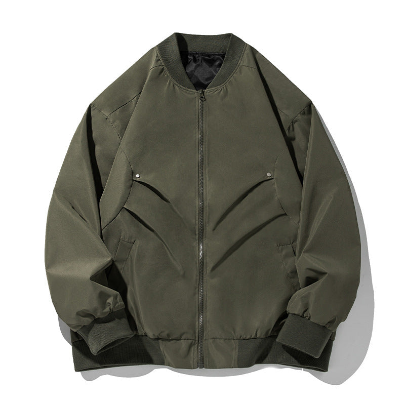 Featuring a unique pleated structure and a classic baseball collar ⚾, this bomber jacket delivers an edgy, sporty look with a refined touch. The meticulous design details, including reinforced stitching and a modern silhouette, ensure both durability and style—ideal for men on the move, whether heading to work or enjoying a casual day out.