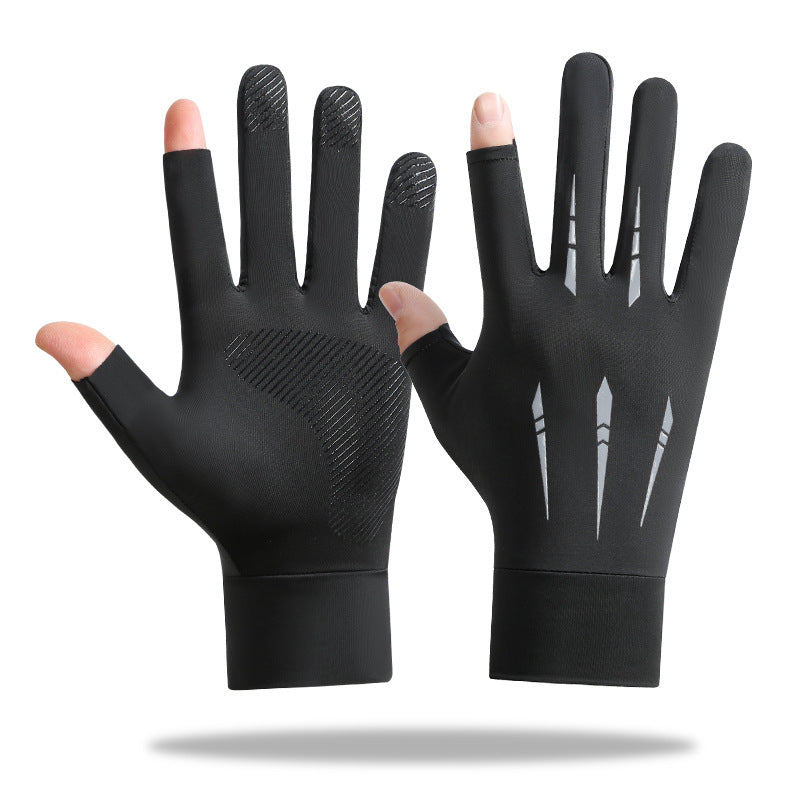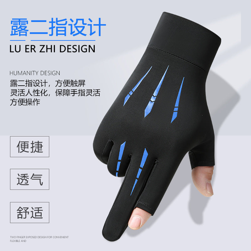 Men’s Summer Ice Silk Sunscreen Gloves – Two-Finger Exposed