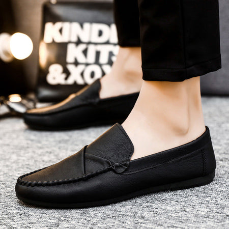 Men’s Summer Leather Loafers – Soft Sole Casual Korean Shoes