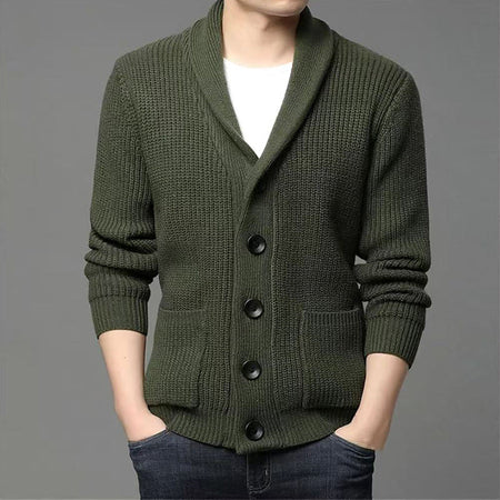 Men’s Thick Wool Button Cardigan Green Nepal