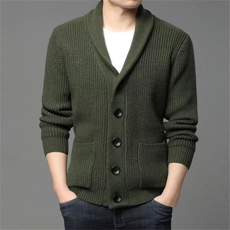 Stay warm and stylish this season with our Men’s Autumn and Winter Thickened Wool Cardigan 🧥❄️ — a versatile and cozy sweater jacket perfect for men in Nepal. Featuring a green solid color, V-neck design, and shawl collar, this button-up cardigan combines classic style with modern casual fashion 🏔️🌬️.